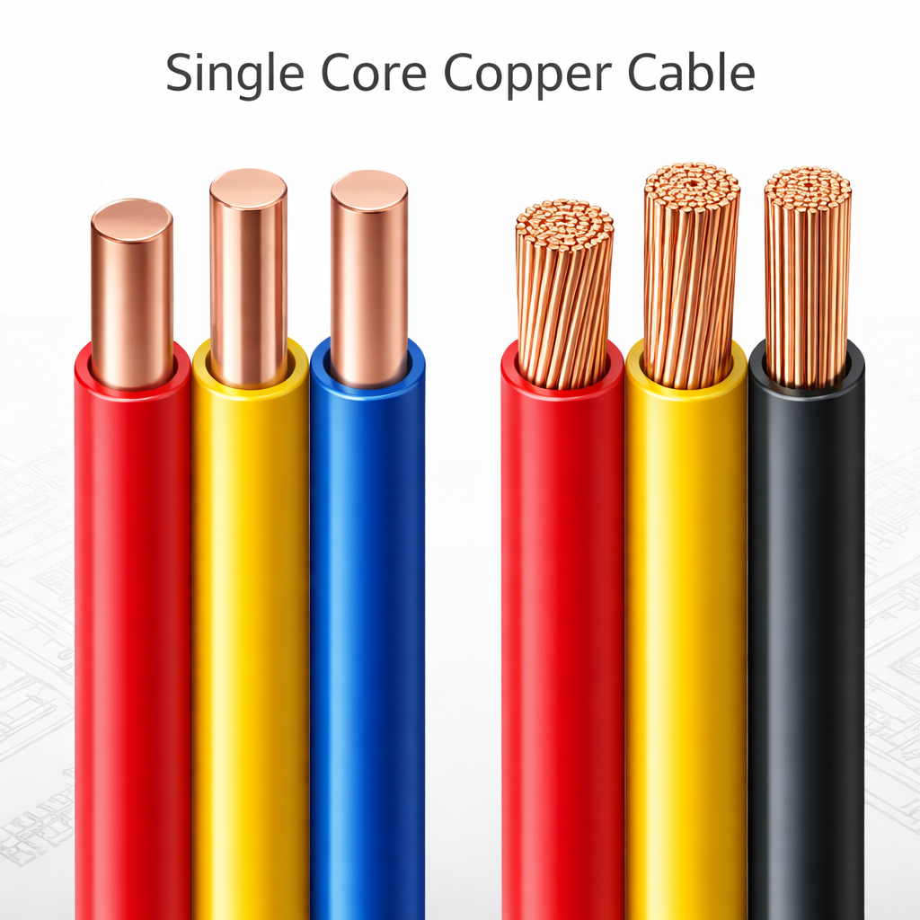 Swami Cables LLP manufactures Single Core Cableswith high-purity copper conductors, available in solid or stranded forms, designed for reliable electrical transmission in residential, commercial, and industrial installations. These cables deliver consistent conductivity, excellent mechanical strength, and durability, making them ideal for fixed wiring, power distribution, and control systems. The copper conductor ensures minimal energy loss while maintaining long-term reliability.